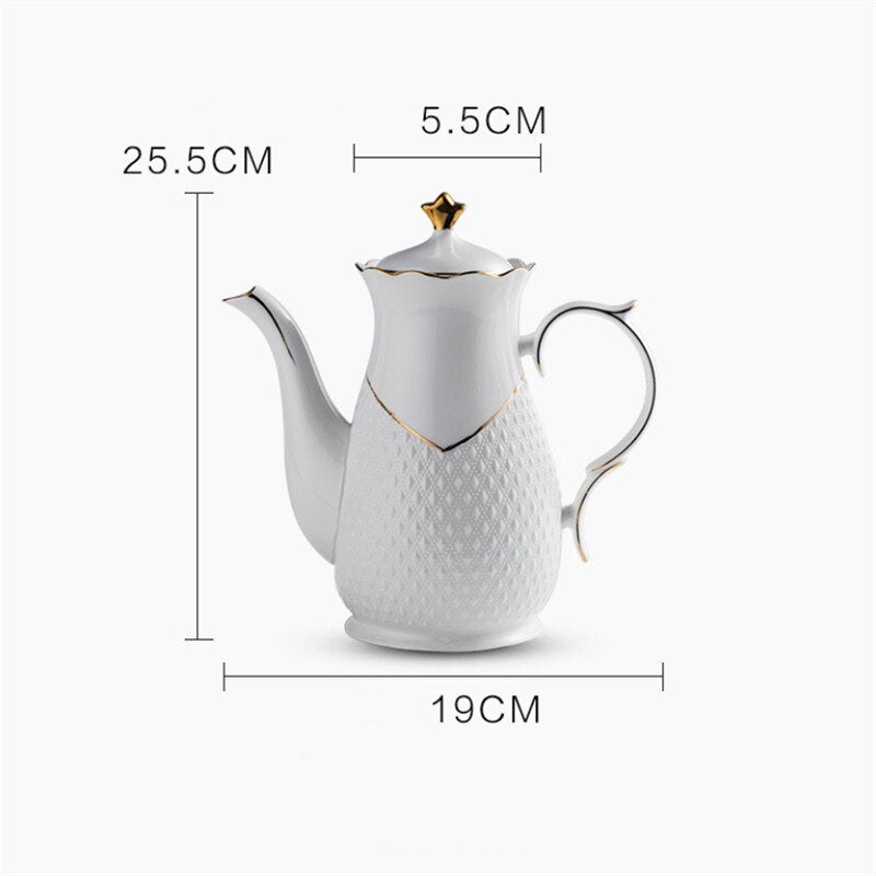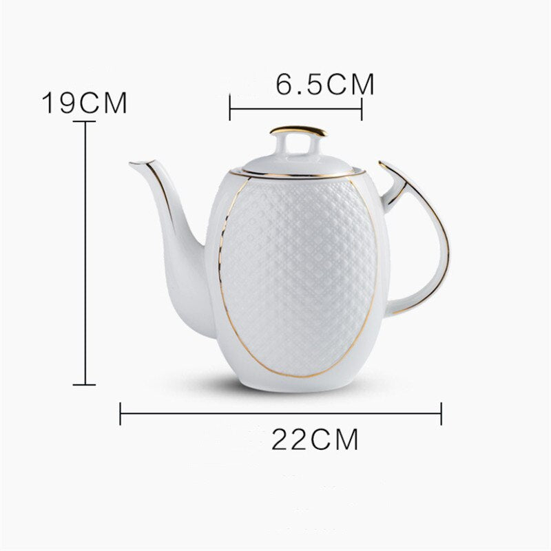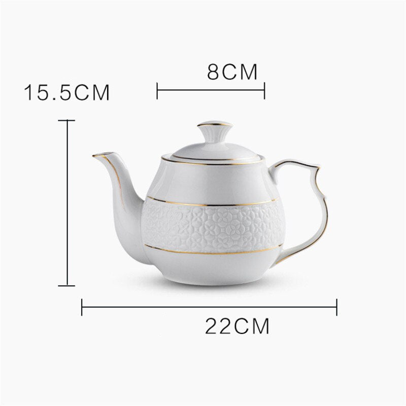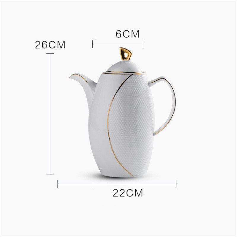 Chaque théière est fabriquée en porcelaine fine, réputée pour sa durabilité et sa capacité à conserver la chaleur. Les lignes courbes et gracieuses de ces théières combinent harmonieusement style classique anglais et modernité. Le bec verseur est conçu pour un versement fluide et précis, évitant les éclaboussures, et les motifs dorés ajoutent une touche supplémentaire de raffinement.